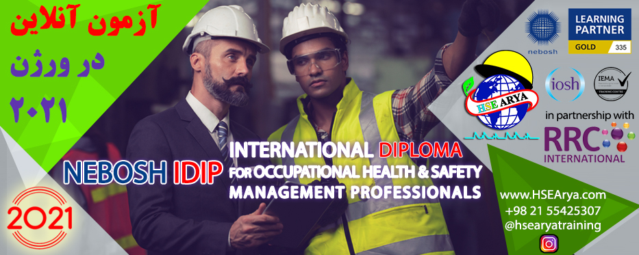 شرکت HSE Arya، نماینده رسمی RRC International انگلستان در ایران، دوره های NEBOSH را بصورت آموزش آنلاین و آزمون حضوری و آنلاین در ایران (همچنین بصورت درون سازمانی در سراسر کشور) ارائه می دهد.