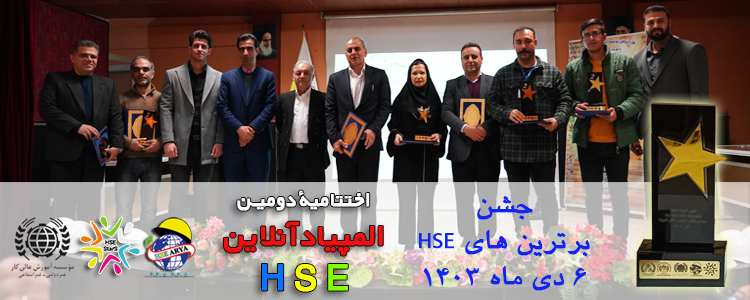 مراسم اختتامیۀ دومین المپیاد ملی HSE به عنوان «جشن برترین های HSE»، ششم دی ماه 1403، با حضور رؤسای دانشگاه ها، بورد خبرگان المپیاد، افراد برجسته HSE در کشور و شرکت کنندگان محترم المپیاد، به منظور اهداء جوائز نفرات برتر، اهداء گواهینامۀ نفرات حائز نمرۀ قبولی، همچنین قدردانی از مسئولین برگزاری این رویداد ملی، از ساعت 10 صبح تا 12 ظهر در سالن آمفی تئاتر دانشگاه کار قزوین برگزار شد.